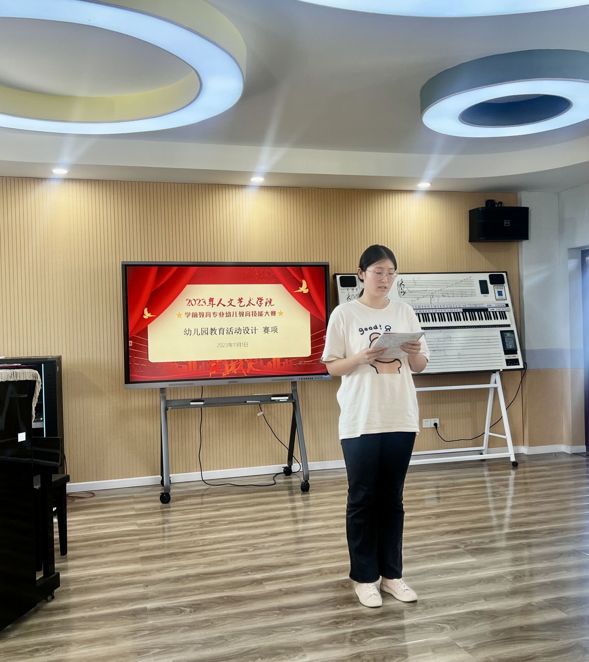 10月25日至11月3日,威廉希尔足球官网举行第九届学前教育专业学生技能竞赛。通过前期对2022级学前教育专业学生的全员考核,本次共有45名选手进入决赛。比赛内容对接全国职业院校技能大赛标准,共设置幼儿园教育活动设计、幼儿教师职业素养测评、幼儿园保教活动课件制作、幼儿故事讲述、幼儿歌曲弹唱与歌表演、简笔画等六个项目。