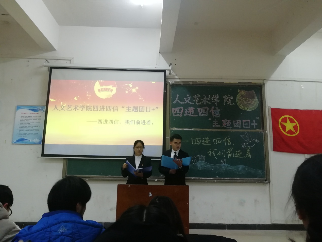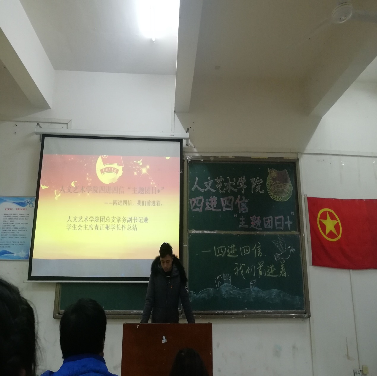 12月28日晚,威廉希尔足球官网团总支组织部在文A106教室举行主题为“四进四信,我们前进着”的四进四信 “主题团日+”活动。参加本次活动的有威廉希尔足球官网主席团全体成员、团总支学生会全体部长及18级各班班长、团支书。