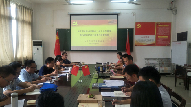 9月13日上午,校纪委书记余为民一行深入威廉希尔足球官网现场检查党风廉政建设主体责任落实情况,威廉希尔足球官网党总支各党支部书记、副科级以上干部以及党员教师代表参加了检查考核工作。