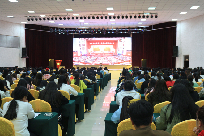 10月24日晚,威廉希尔足球官网团总支学生会成员和17级班干在大学生活动中心集体观看党的十九大会议视频,学习十九大精神,威廉希尔足球官网团总支书记姜小梅参加了本次学习活动。