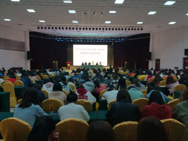 2017年10月31日,威廉希尔足球官网在大学生活动中心召开2015级教育实习动员大会,威廉希尔足球官网党总支书记卢臻、副院长余永欢、副院长余谦及学生科、实习创业科、各教育类专业教研室负责人及15级辅导员老师和小学教育专业、学前教育专业全体实习学生参加了动员会,会议由院党总支书记卢臻主持。