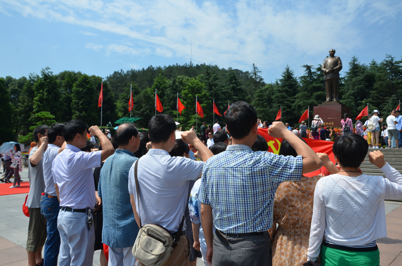 韶山是各族人民的伟大领袖毛泽东同志的故乡,也是他青少年时期生活、学习、劳动和从事革命活动的地方,是全国著名革命纪念地、全国爱国主义教育基地,是全体党员心目中的理想圣地。活动过程中,全体党员怀着激动的心情来到这块红色土地的聚集点——毛泽东广场,广场上熙熙攘攘,热闹中透着深深的庄严与肃穆。全体党员面向伟大领袖毛主席的纪念铜像三鞠躬寄托万千情思,并举行了新党员宣誓暨全体党员重温入党誓词仪式,庄重的宣誓活动深度叩问着每一位党员的灵魂,也使每一位党员的精神受到深刻洗礼。