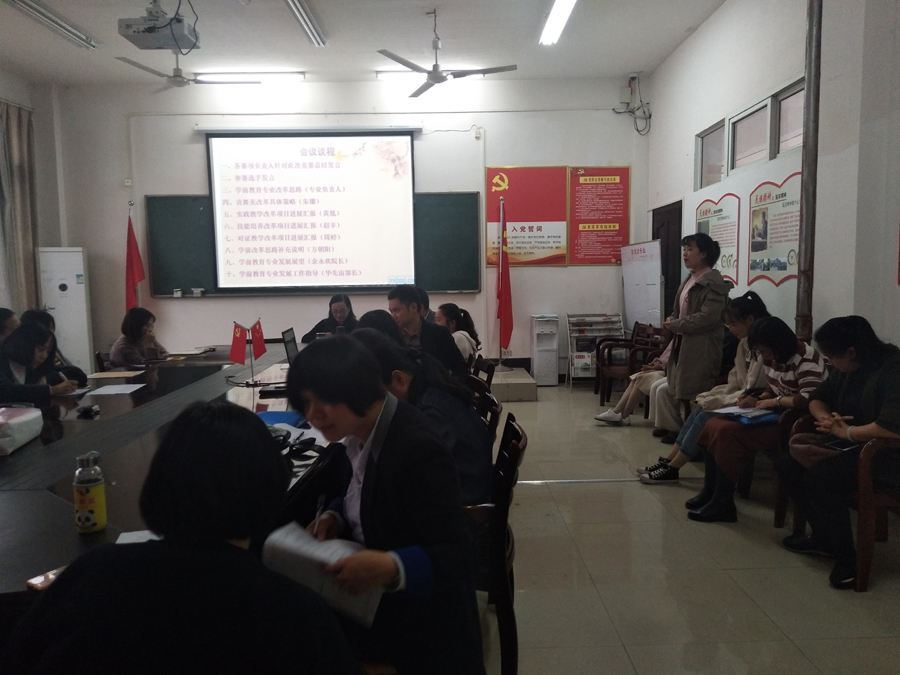 会议的第二部分重点对学前教育专业教学改革进行了研讨,学前教育专业周婷老师代表学前教育专业朱焕芝主任向全体教师介绍了学前教育专业教学改革思路,音乐教研室主任朱珊老师重点就音乐舞蹈课程改革进行了讲解,学前教育专业三个教学改革小组负责人也分别汇报了改革进展,代理副院长方朝阳最后对学前教育专业改革思路进行了补充说明。