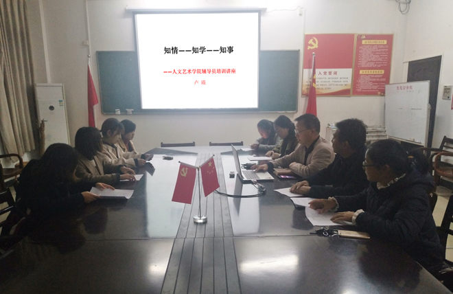 为深入学习贯彻习近平新时代中国特色社会主义思想和党的十九大精神,认真落实教育部43号令,扎实推进“五个思政”,威廉希尔足球官网于11月14日下午在文A501党员活动室召开辅导员培训会。威廉希尔足球官网党总支书记卢臻同志作辅导员工作专题培训,威廉希尔足球官网副院长杨帅及2018级全体辅导员参加了培训会。