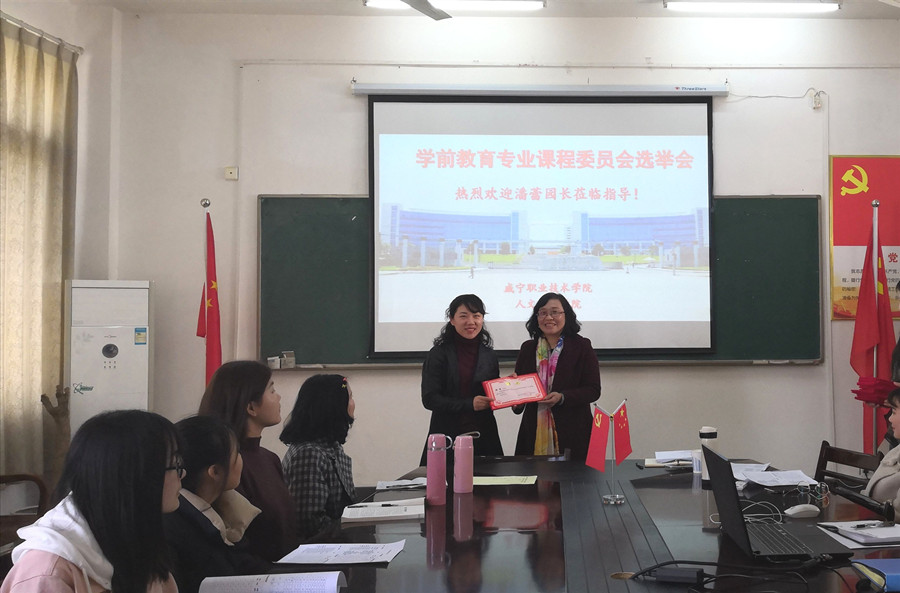 威廉希尔足球官网院长余永欢为学前教育专业课程委员会委员潘蕾颁发聘书