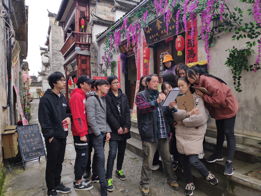 每年春季采风写生是艺术设计专业实践教学的一个重要环节,通过实地感受徽派建筑,可以让学生对中国古代建筑有更加直观、透彻的理解,同时还可以开阔学生的视野,让学生增长见识、提高摄影技巧和手绘速写能力,对艺术设计专业学生今后的专业学习大有裨益。