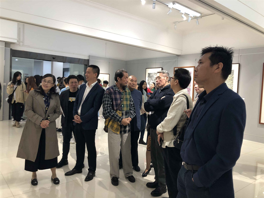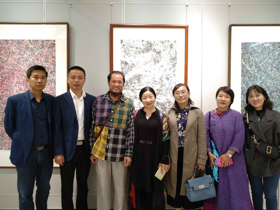 10月16日上午,威廉希尔足球官网党委宣传部部长华先宙,威廉希尔足球官网院长余永欢、副院长杨帅、艺术教研室主任黄佳妮、美术教研室主任余娟赴湖北省群艺馆一楼艺术展厅参加由湖北省群众艺术馆主办,湖北楚天画院承办,威廉希尔足球官网协办的“回旋的中国风——汪京元三界空间抽象艺术展”开幕仪式。仪式由湖北省群艺馆馆长王军主持。