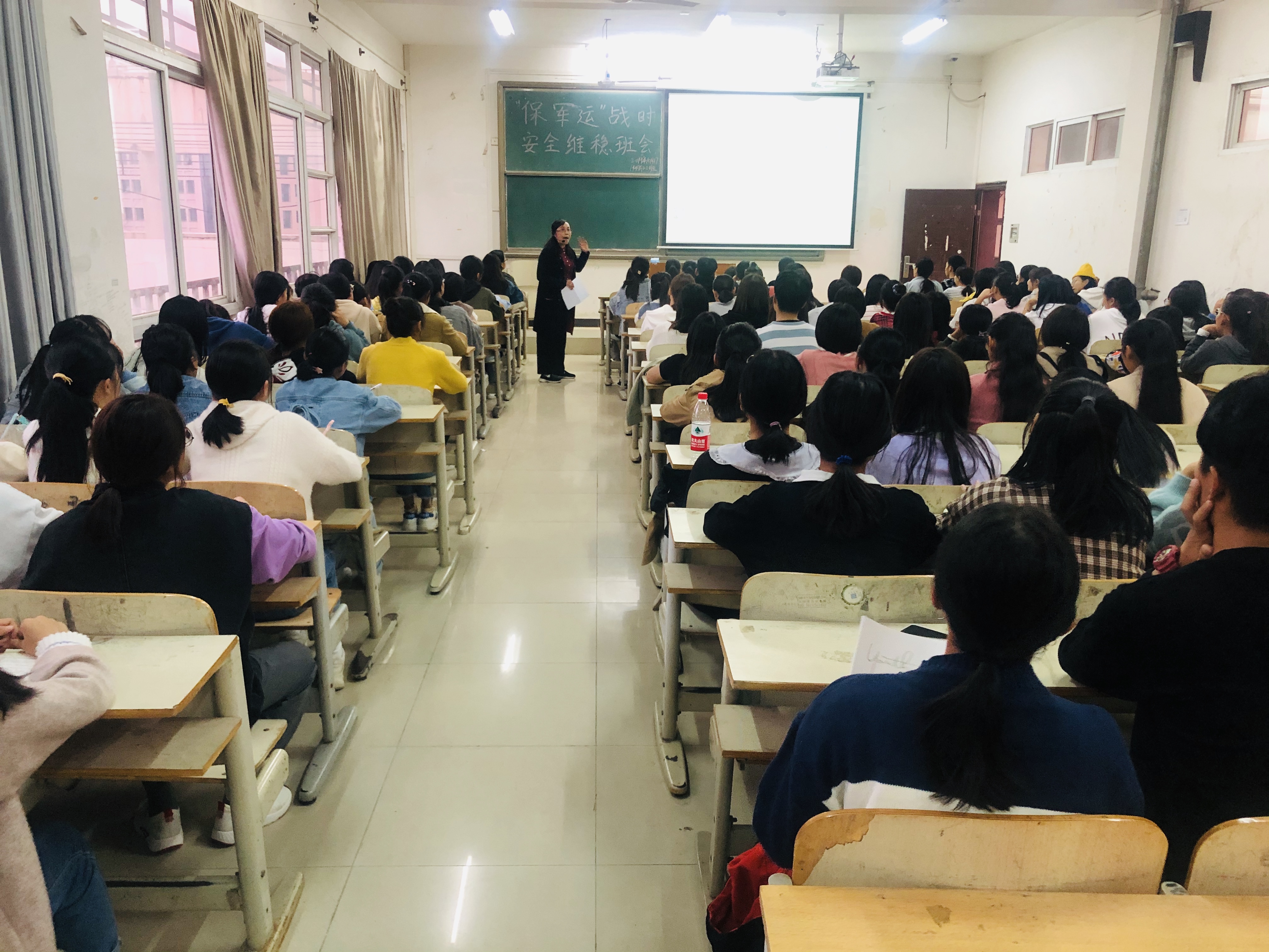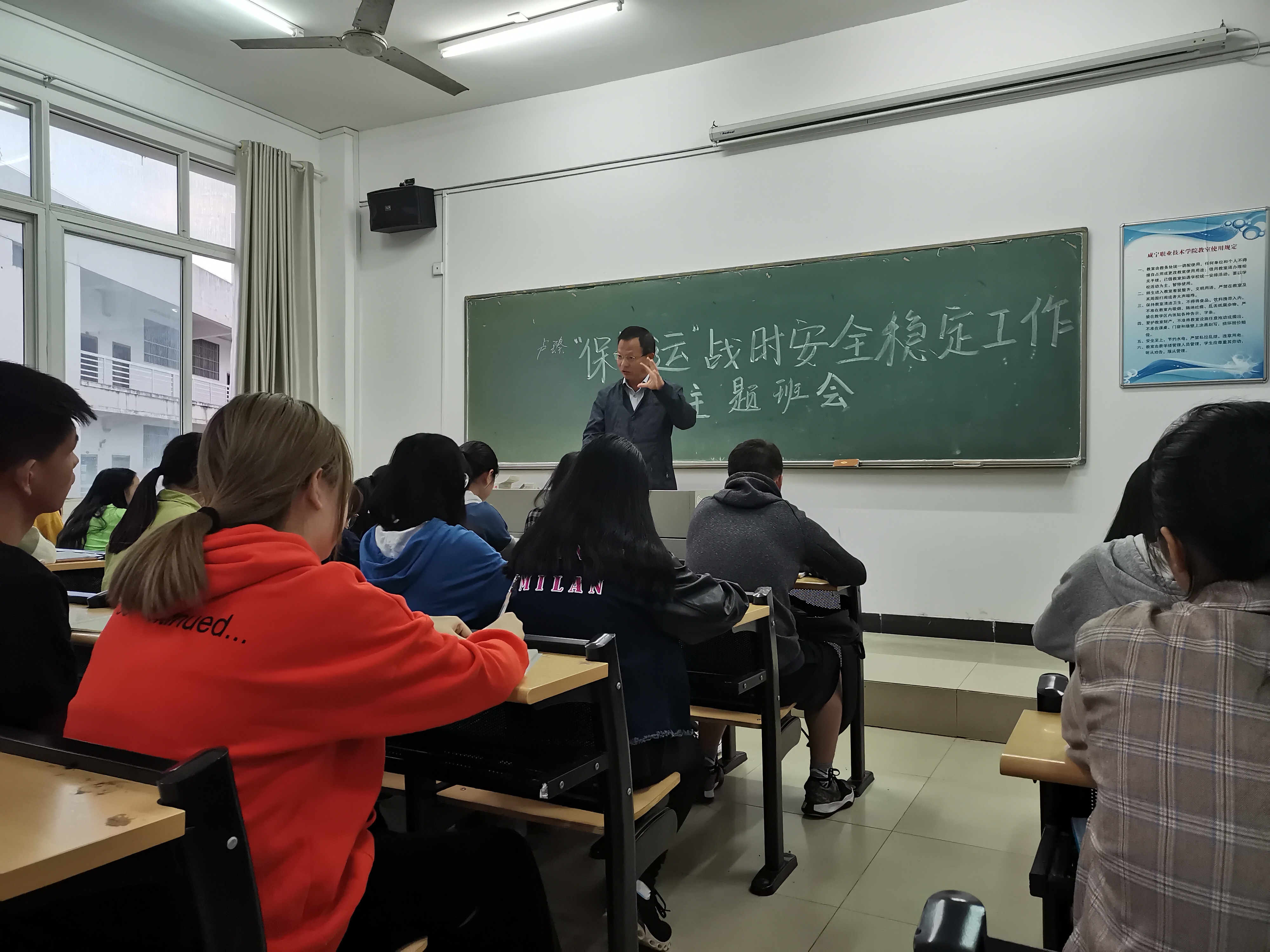 为认真贯彻落实省委、市委关于“迎大庆、保军运”安全稳定工作会议精神,切实做好第七届世界军人运动会期间我校的维稳安保工作,威廉希尔足球官网积极响应学校党委专项工作要求,于10月17日下午分别在文B503和文C601教室由党总支书记卢臻和院长余永欢带头召开了“保军运”战时安全稳定工作主题班会,他们向学生强调了寝室、交通、饮食以及网络安全,要求学生严格遵守各项纪律,不参与任何聚众集会活动,为确保军运会的顺利进行做出应有贡献。