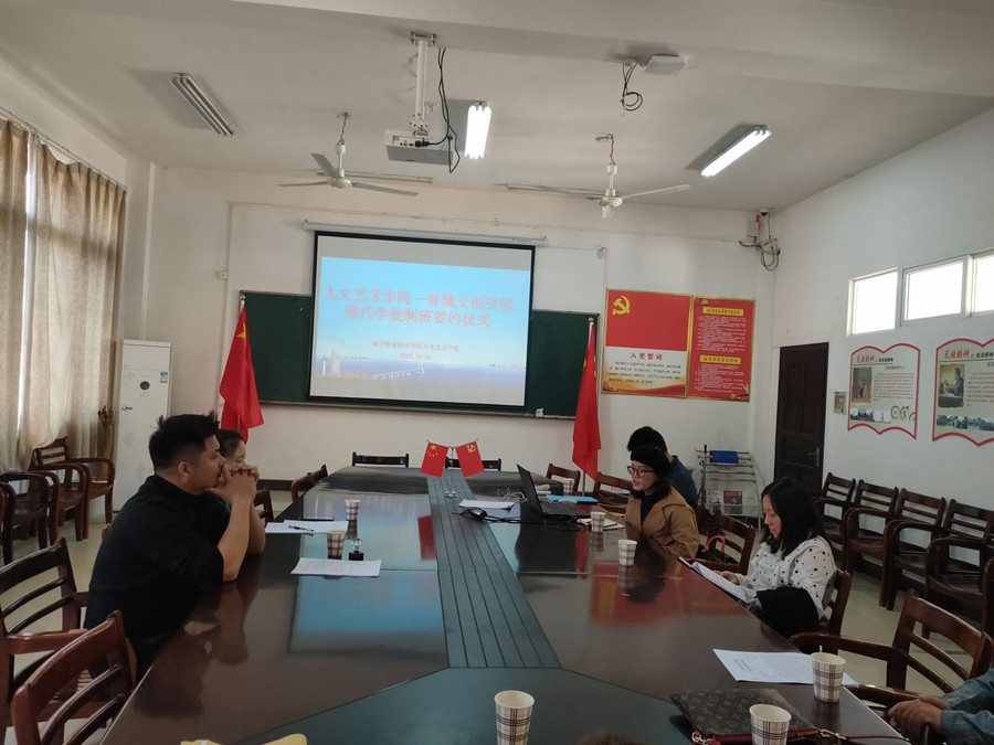 10月31日下午,威廉希尔足球官网现代学徒制班校企合作协议签约仪式在威廉希尔足球官网文华楼会议室成功举行。威廉希尔足球官网院长余永欢、香城文创空间总经理程科及相关负责人员出席签约仪式,艺术设计教研室主任黄佳妮老师主持仪式。