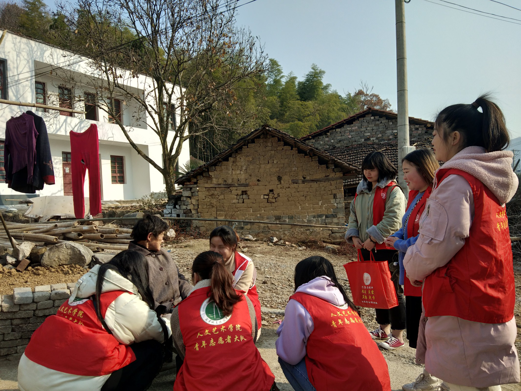 冬日的暖阳格外的温暖,志愿者们来到了一位老奶奶家,替老奶奶打扫卫生,为老人提供了一个更好的生活和休憩场所;给老奶奶捶背、按摩腿脚,缓解了老人腰酸腿疼等身体问题;陪老奶奶话家常,减少老人生活中的孤独感。志愿者们为老奶奶洗完头后和奶奶一起坐在院子,听她讲起以前的故事:那时候生活很苦,吃不饱,穿不暖,但一家人团聚在一起,也就觉得不苦了。老人的一番话,让志愿者们有了很深的感悟,不仅让志愿者们坚定了爱老敬老的信念,也让他们明白中华传统美德的重要性。