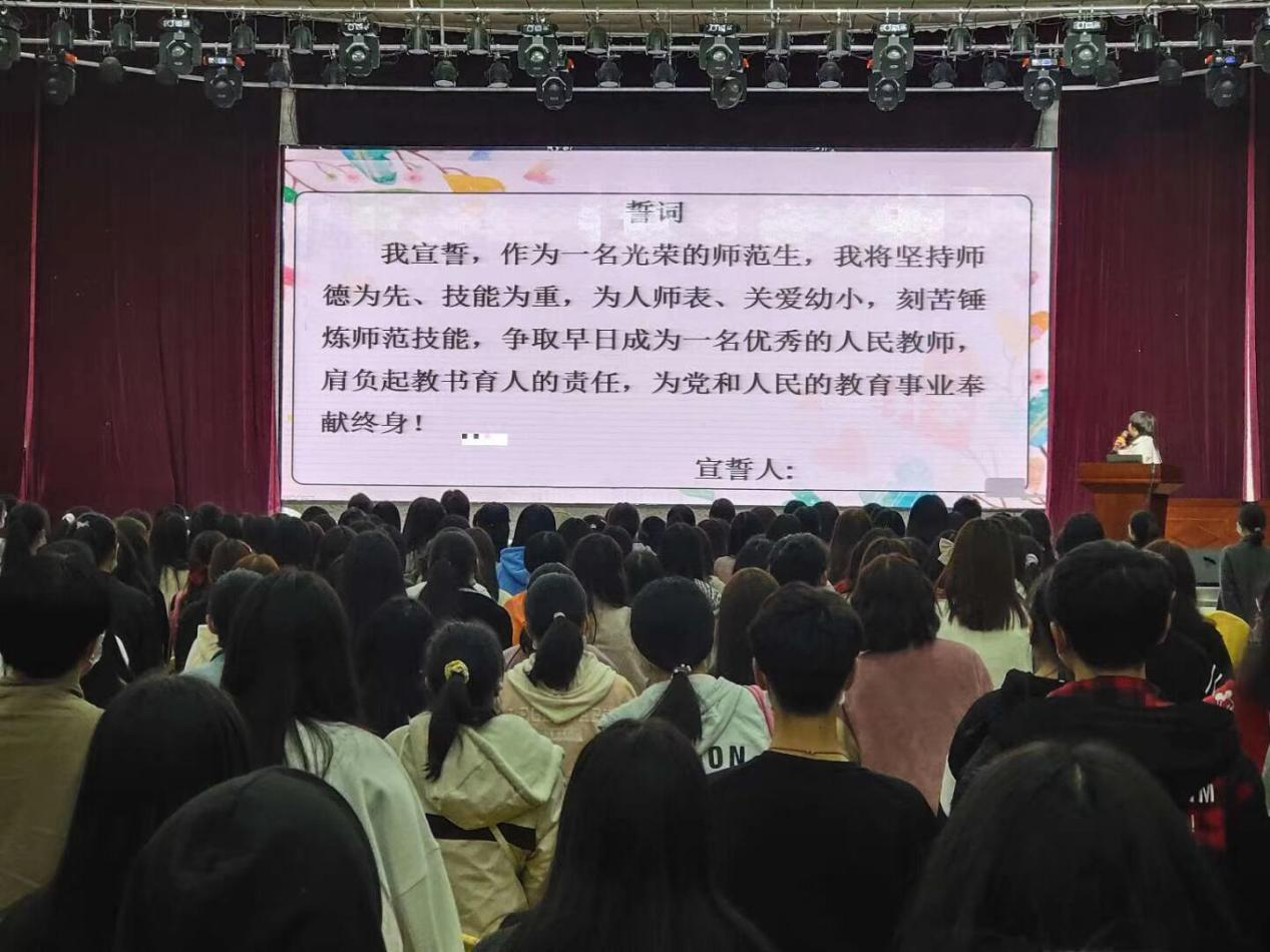 最后,学前教育专业骨干教师涂兰娟带领全体学生进行师范生宣誓,本次讲座在一片铿锵有力的宣誓声中落下帷幕。