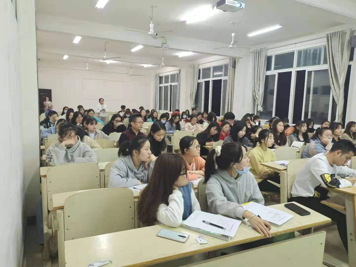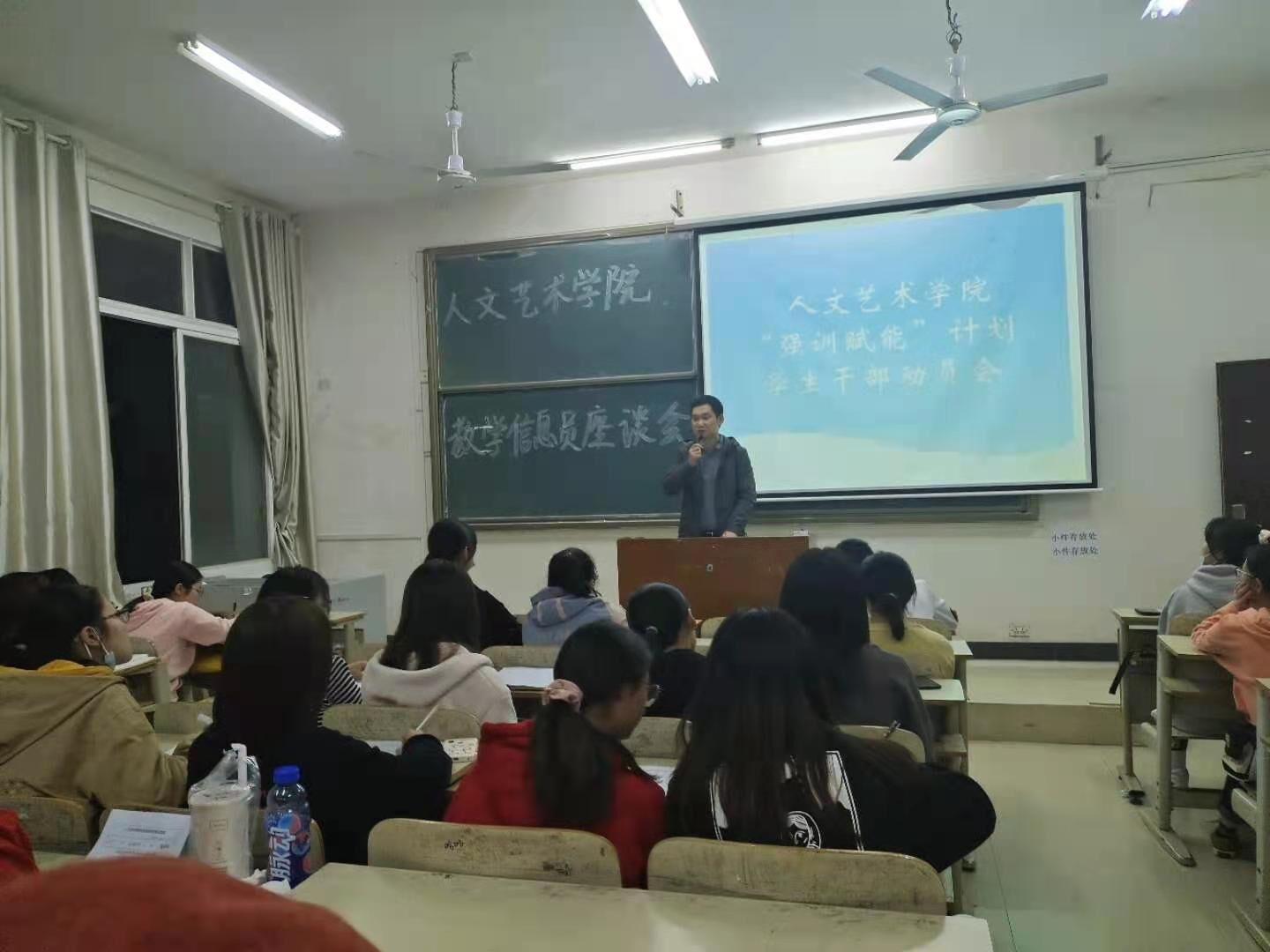 会议现场同学们认真听取老师讲解计划实施方案与要求
