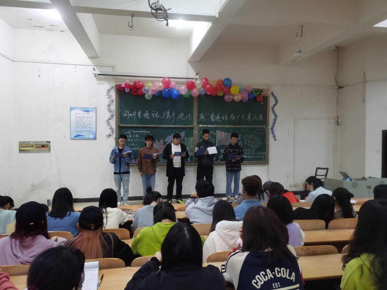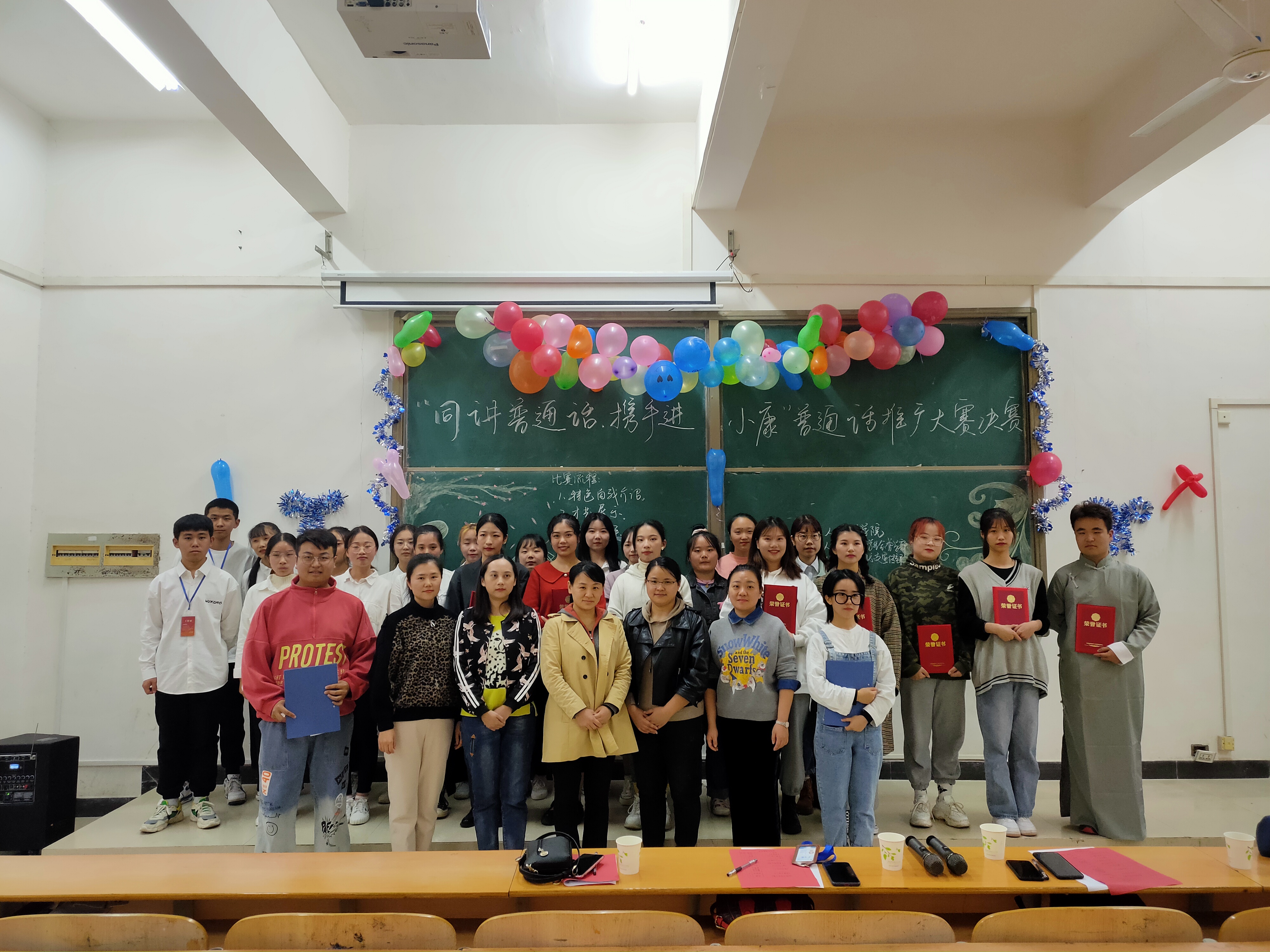 威廉希尔足球官网联合学校语委办主办的“同讲普通话,携手进小康”普通话大赛通过全院班级初赛,半决赛,最后选出21组选手进入决赛。