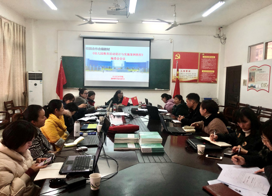 校·园合作教材《幼儿园教育活动设计与实施案例教程》编委会会议现场