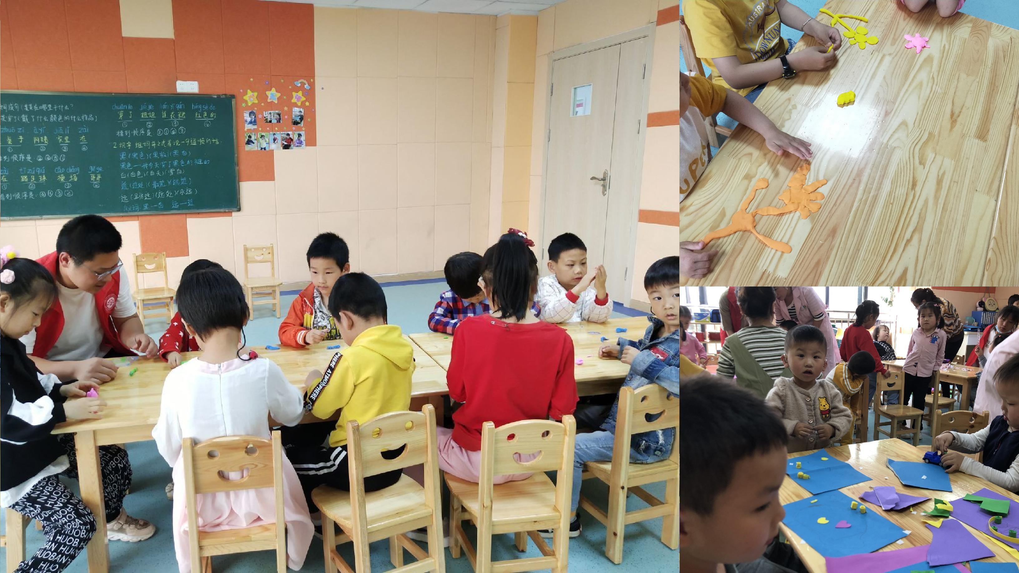 志愿者们走进教室,与孩子们一起亲切交流,进行了捏橡皮泥模型、手工绘画、剪纸等活动,给予孩子们心灵的关怀。志愿者们还将自己精心准备的小礼物赠送给孩子们,孩子们感受到了哥哥姐姐们的关爱,脸上洋溢着幸福的笑容。