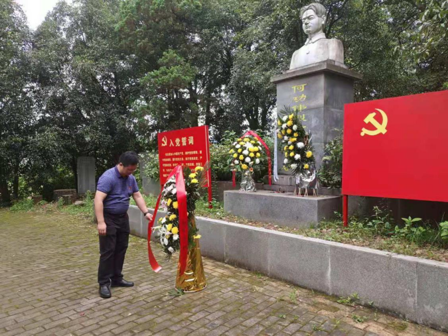 大家首先赴何功伟纪念碑举行了祭奠活动并敬献花篮,向烈士三鞠躬,集体默哀,表达对革命先烈的缅怀和哀思。