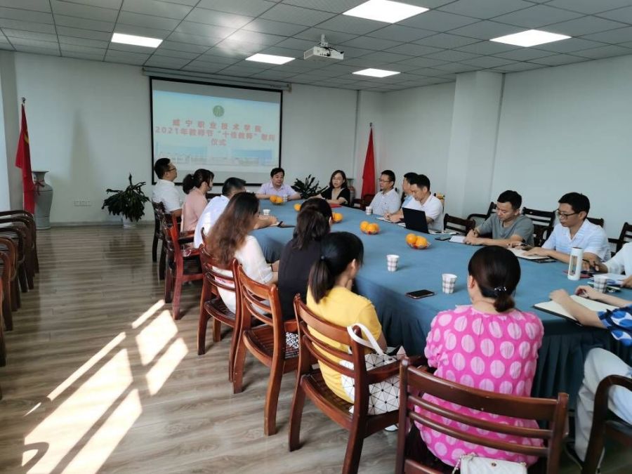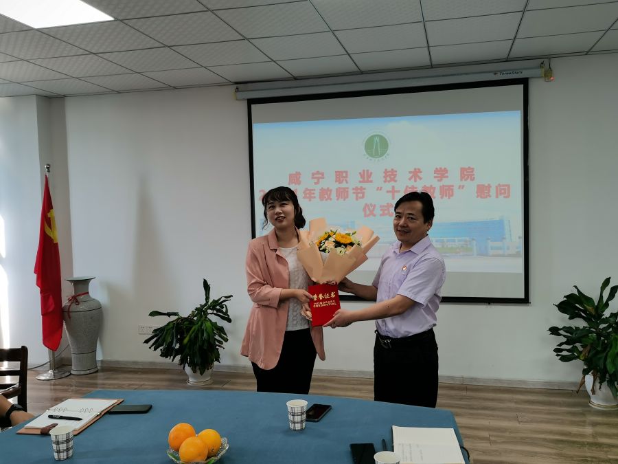 座谈会上,余为民代表学校为周婷颁发了“十佳教师”荣誉证书,赠送鲜花,向全院教师致以节日问候。他表示,近年来,学校始终高度重视职业教育事业发展,坚持教育优先发展战略,持续加大教育投入,积极引进优质资源,强化教育教学管理,教育事业和教师工作取得了新进展新成效。全院教职工认真贯彻党的教育方针,立足本职、爱岗敬业、钻研业务、无私奉献,为学校“双高”建设作出了重要贡献。希望全院教职工不忘立德树人初心,牢记为党育人、为国育才使命,以更加饱满的热情立足三尺讲台、潜心教书育人,紧紧围绕党代会提出的“三步走”目标作出新的更大贡献。