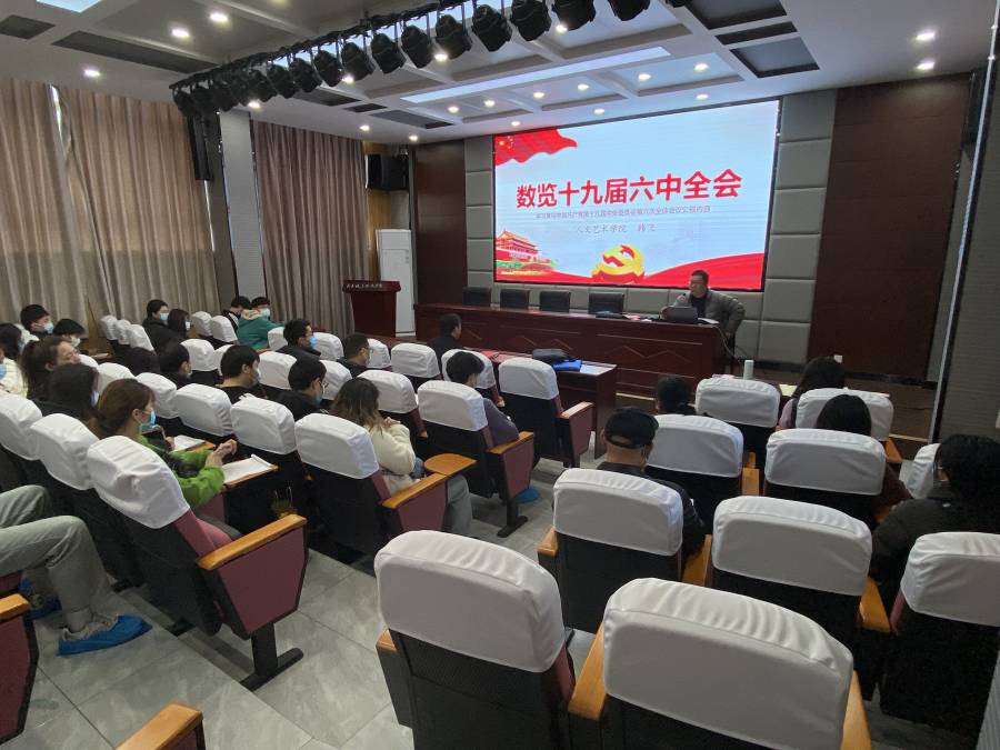 为进一步学习贯彻落实党的十九届六中全会精神,12月6日下午,威廉希尔足球官网党务负责人韩飞在教育实训中心201为学生第一、二党支部全体党员作题为《数览十九届六中全会》专题党课教育。