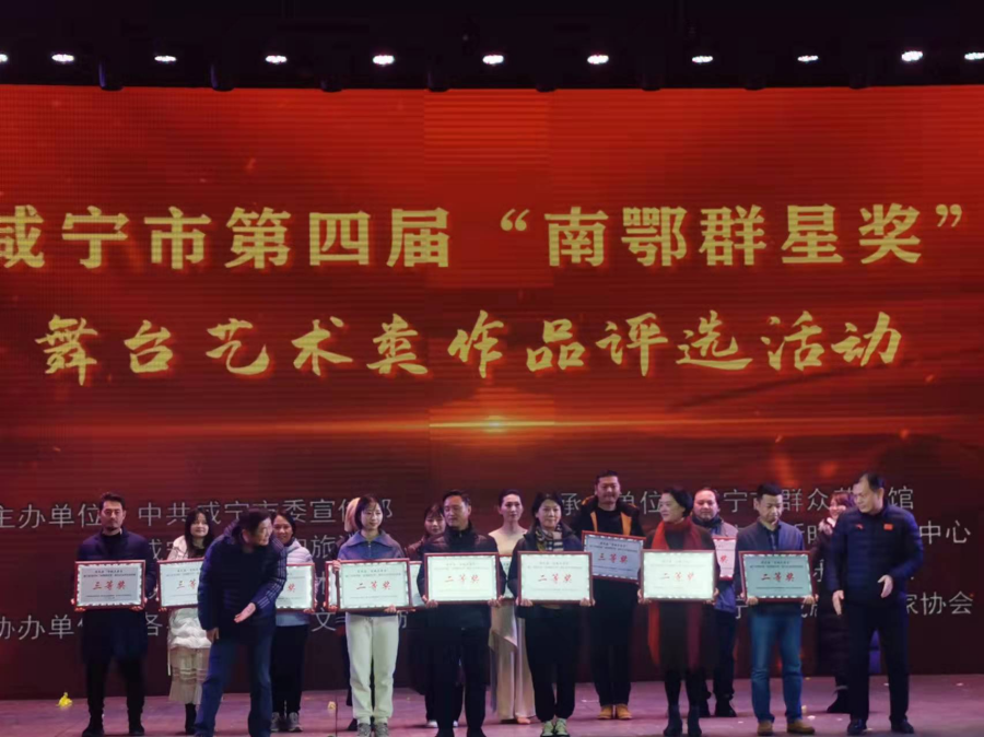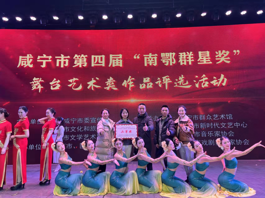 12月25日晚,咸宁市第四届“南鄂群星奖”舞台艺术类评选活动在时舞剧场举行。本次活动由中共咸宁市委宣传部、咸宁市文化和旅游局、咸宁市文学艺术界联合会主办,各县市区代表队、市直有关文艺团队参加演出。我校代表队荣获二等奖。