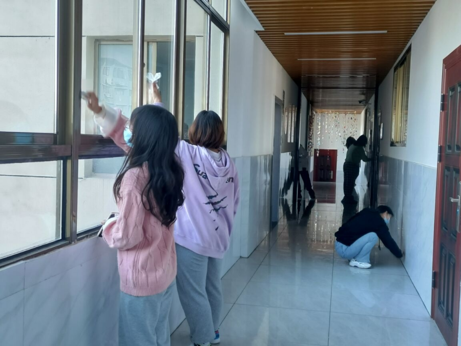 志愿者们小组合作、分工明确,各个干劲十足,对实训楼各个角落进行大扫除,做到不留死角。经过一天的“奋战”,教育实训中心焕然一新,呈现出整洁亮丽、活泼清新的新气象。