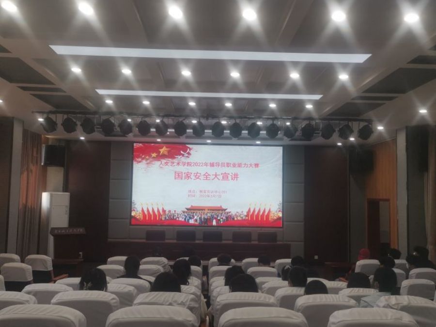 为深入贯彻落实全国高校思想政治工作会议精神、总体国家安全观,加强师生国家安全教育,增强全民国家安全意识,并且提升辅导员的专业技能和业务素质,3月7日晚,威廉希尔足球官网2022年辅导员职业能力大赛暨“开学第一课”国家安全大宣讲比赛在教育实训中心201报告厅举行,学院党务负责人韩飞,院长余永欢,副院长方朝阳、杨帅及学生科科长陈传红出席并担任评委。
