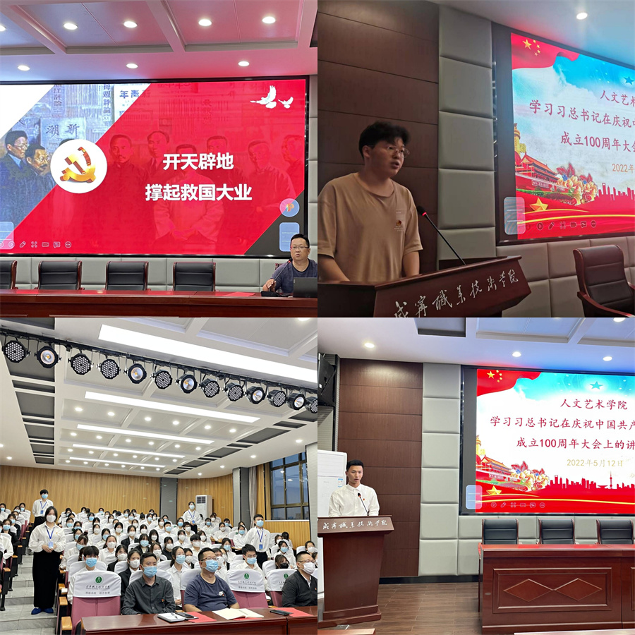 在观看过程中,全体人员聚精会神,仔细听、认真记,沉浸在巨大的鼓舞和振奋之中。大家一致认为,习近平总书记的重要讲话高屋建瓴、思想深邃,全面回顾了一百年来共青团坚定不移听党话、跟党走的青春历程,充分肯定了共青团在党的领导下、团结带领一代代共青团员为实现中华民族伟大复兴中国梦所作出的重要贡献,深刻阐明了共青团和青年工作的历史经验,对当代青年寄予殷切期望,对做好新时代共青团工作提出明确要求,饱含着对青年的亲切关怀和青年工作的高度重视。随后,19级预备党员代表刘峥和21级入党积极分子代表方浩博与大家分享了学习体会。最后,韩飞以《开天辟地撑起救国大业》为题,为全体成员上了一堂生动的党课。