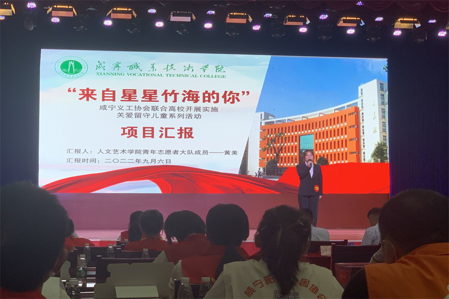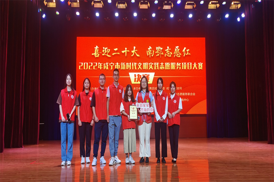 2022年9月6日,由中共咸宁市委宣传部、市委文明办主办的“喜迎党的二十大 南鄂志愿红”——2022年咸宁市新时代文明实践志愿服务项目大赛决赛在市老年大学学术报告厅举行。来自6个县市区和市直相关单位的20个项目同台竞技,其中威廉希尔足球官网团总支青年志愿者大队“来自星星竹海的你”关爱留守儿童项目入围决赛。