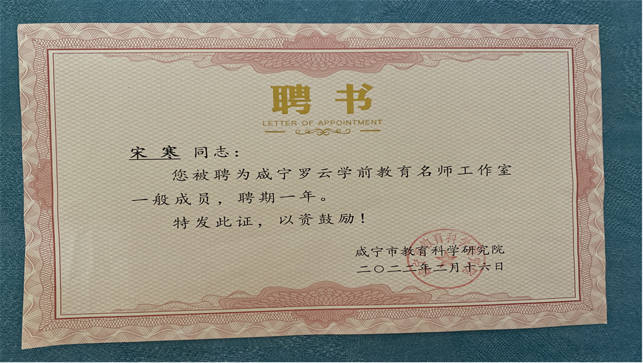 宋寒老师获聘交幼“罗云名师工作室”成员