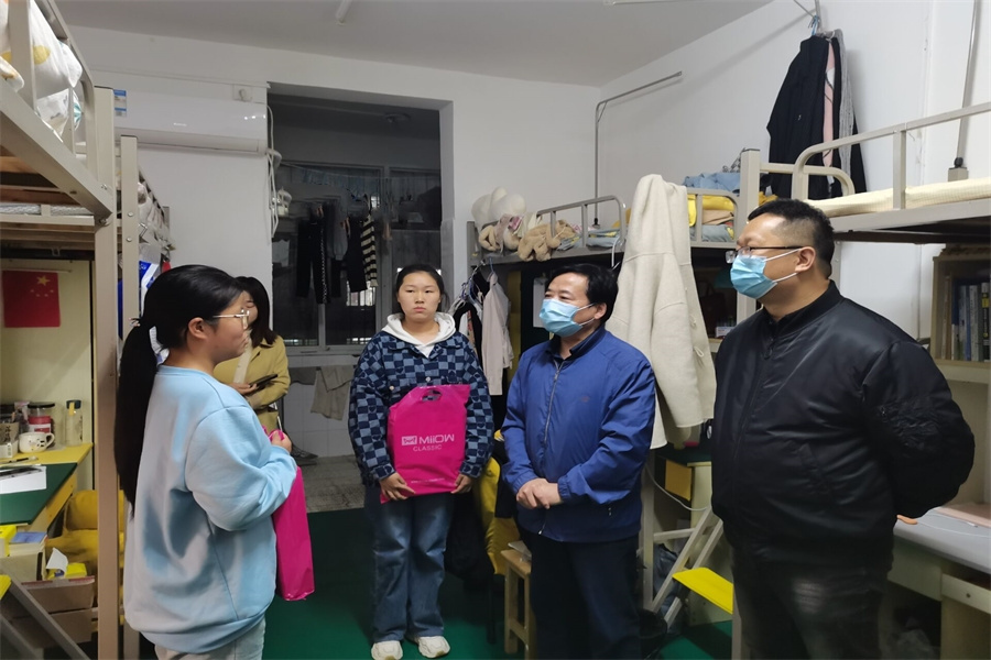 余为民来到学生寝室后,与同学们进行了详细亲切的交谈,倾听并解答同学们入学以来的感受及学习生活上的困难,并为经济困难学生发放冬补衣物。余为民希望受助学生能够在学校安心、放心、暖心、舒心地学习和生活,勤奋学习、奋发图强,心存感激,以优异的成绩和过硬的本领回报党和社会的关心关怀,回报学校的培养教诲。