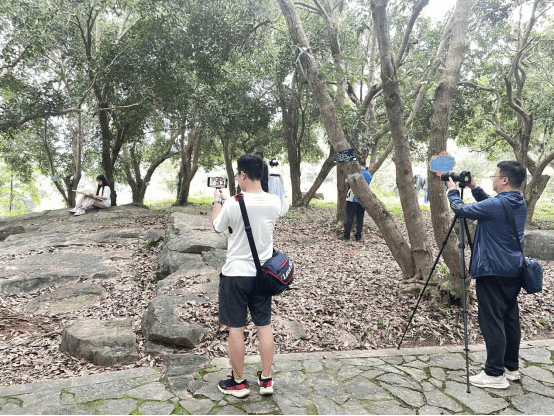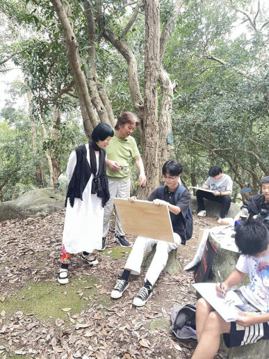 桂花园风景优美,桂树繁茂,为同学们提供了广阔的审美空间和丰富的创作素材。同学们拿上画板、画具,在黄佳妮、石海林、冯秋萍三位老师的带领下,步行至桂花园深处,寻找到心仪的景象和绘画角度后,四处落座进行写生创作。三位老师对同学们进行了细致的指导。同学们从最初的无从下笔到最后在纸上挥洒自如,成为了桂花园中一道亮丽的风景线,引得多家媒体、自媒体、网络红人争相拍摄报道。