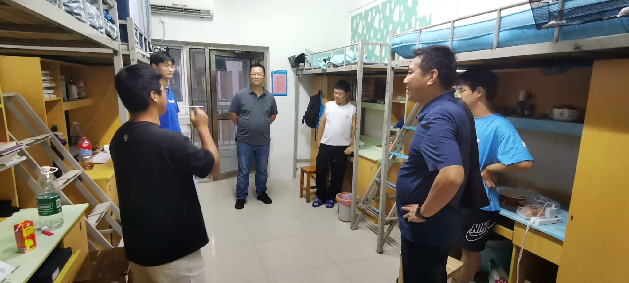 为进一步深入了解学生思想、生活及学习情况,加强5S寝室建设,9月27日晚,威廉希尔足球官网党总支书记韩飞、副书记杨帅、团总支负责人李操及新生辅导员走访新生寝室进行开学初寝室安全检查。